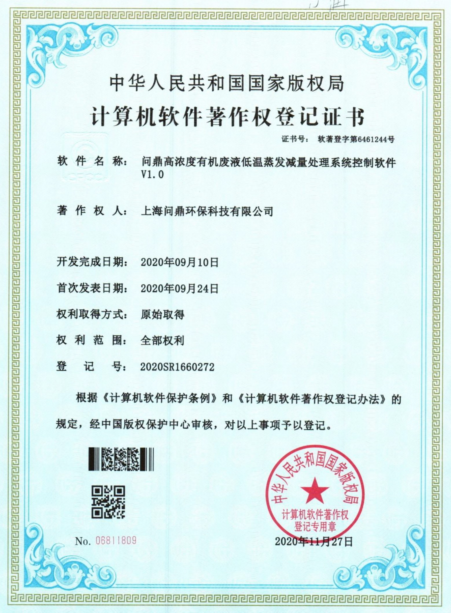问鼎环保丨问鼎高浓度有机非也低温蒸发减量处理系统控制软件V1.0