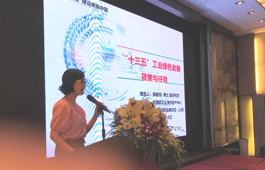 中国轻工业清洁生产中心薛鹏丽博士做了“十三五”工业绿色发展的背景与任务报告