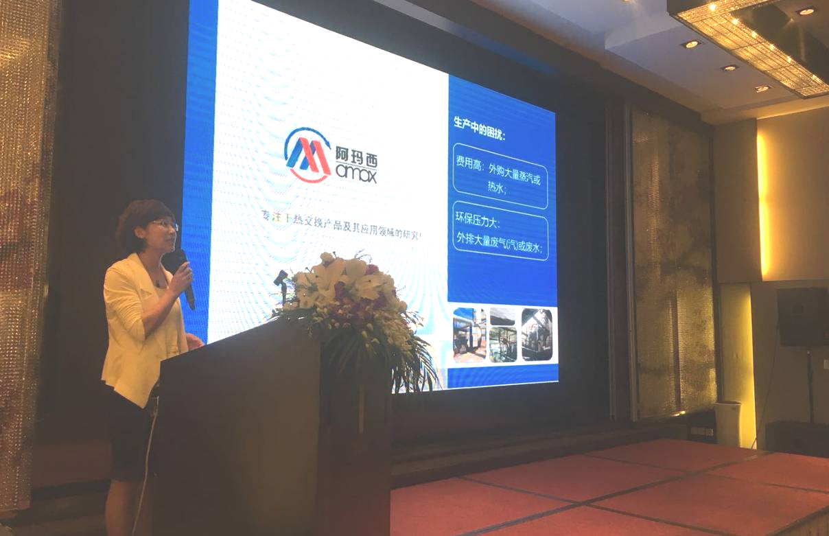 北京阿玛西换热设备制造有限公司副总经理王丽峰做了“高效节能设备在淀粉加工废气废热回收领域的应用价值”的报告