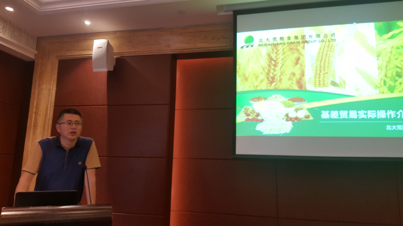 北大荒粮食集团大连分公司经理王献东就玉米基差贸易在实际操作中的问题,与参会嘉宾进行了交流和讲解。王献东首先对基差贸易的基本概念、优势特点和国内基差贸易发展状况进行了介绍,结合国内产业的实际情况,对玉米加工企业如何利用基差贸易来实现原料采购进行了具体分析,并根据其多年实操经验,讲述了如何做好基差贸易和应注意的几个问题。