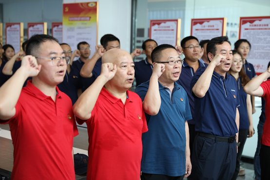 唱国歌、重温入党誓词,整个过程再一次净化了心灵,所有党员用发自内心的声音表达了自己对党的忠诚和热爱,以及为共产主义奋斗终身的决心。