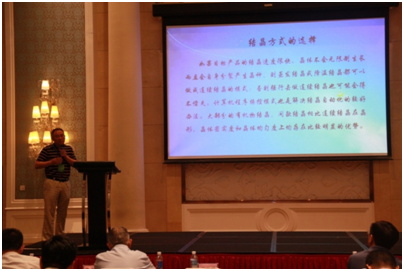 河北乐开节能设备有限公司董事长赖庚音做了《水溶液结晶实战讲解》的报告,对水溶液结晶知识进行了全面、系统的讲解;从结晶基础、结晶方式、结晶设备等做了详细的说明,让与会者对结晶知识有了进一步深入的了解,对实际结晶工艺调控提供了参考。