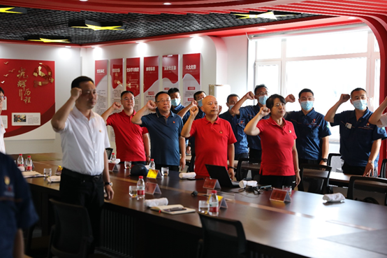 唱国歌、重温入党誓词,整个过程再一次净化了心灵,所有党员用发自内心的声音表达了自己对党的忠诚和热爱,以及为共产主义奋斗终身的决心。